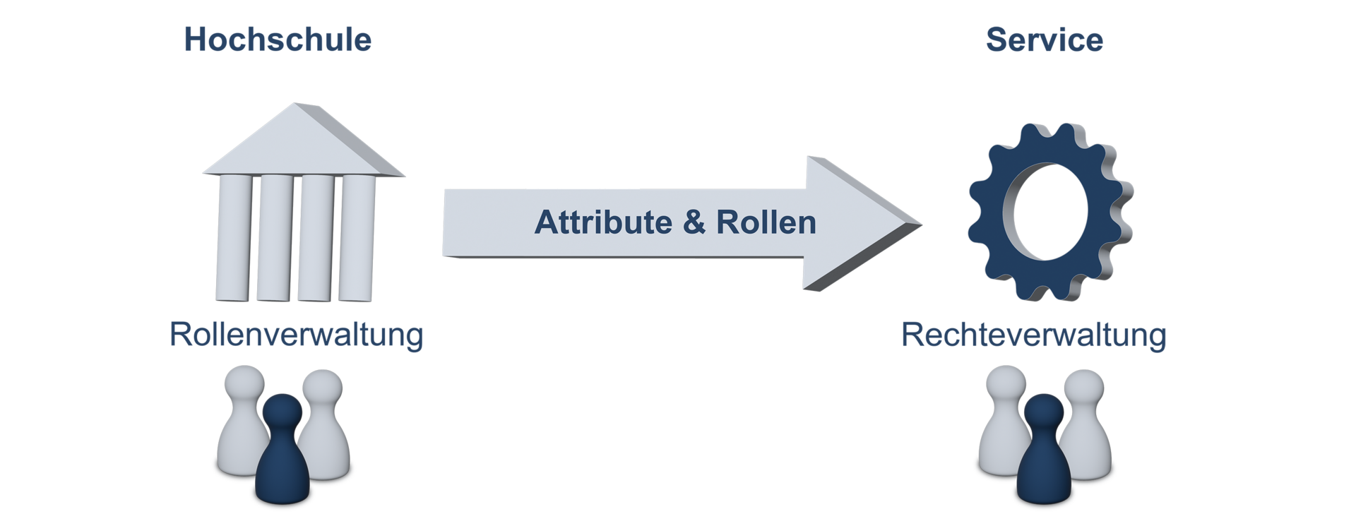 - Um aufwendige Abstimmungen zwischen den Hochschulen (IdPs) und den Services (SPs) zu erübrigen, wurden gemeinsame Standards für Attributformate und Rollen entwickelt.