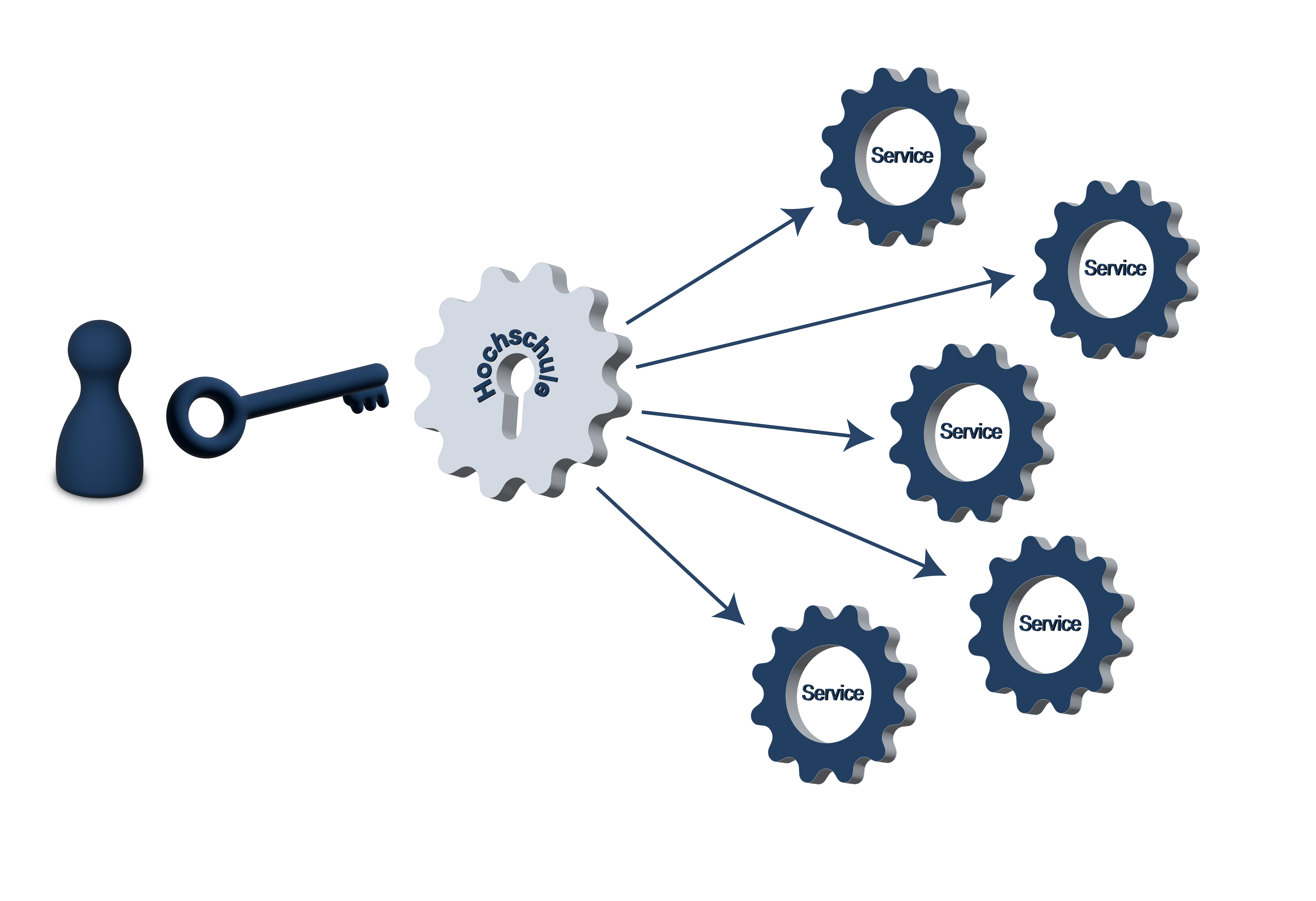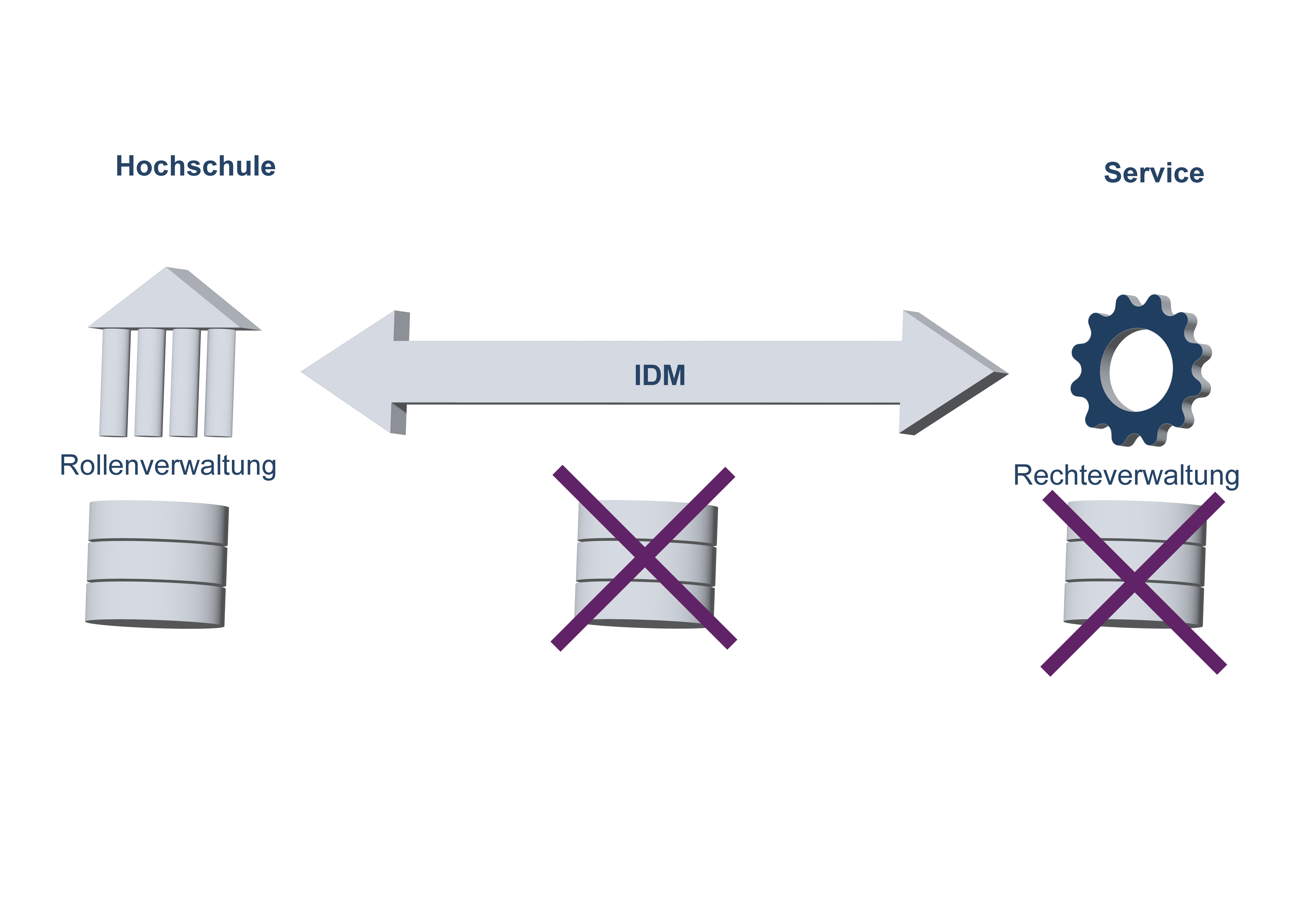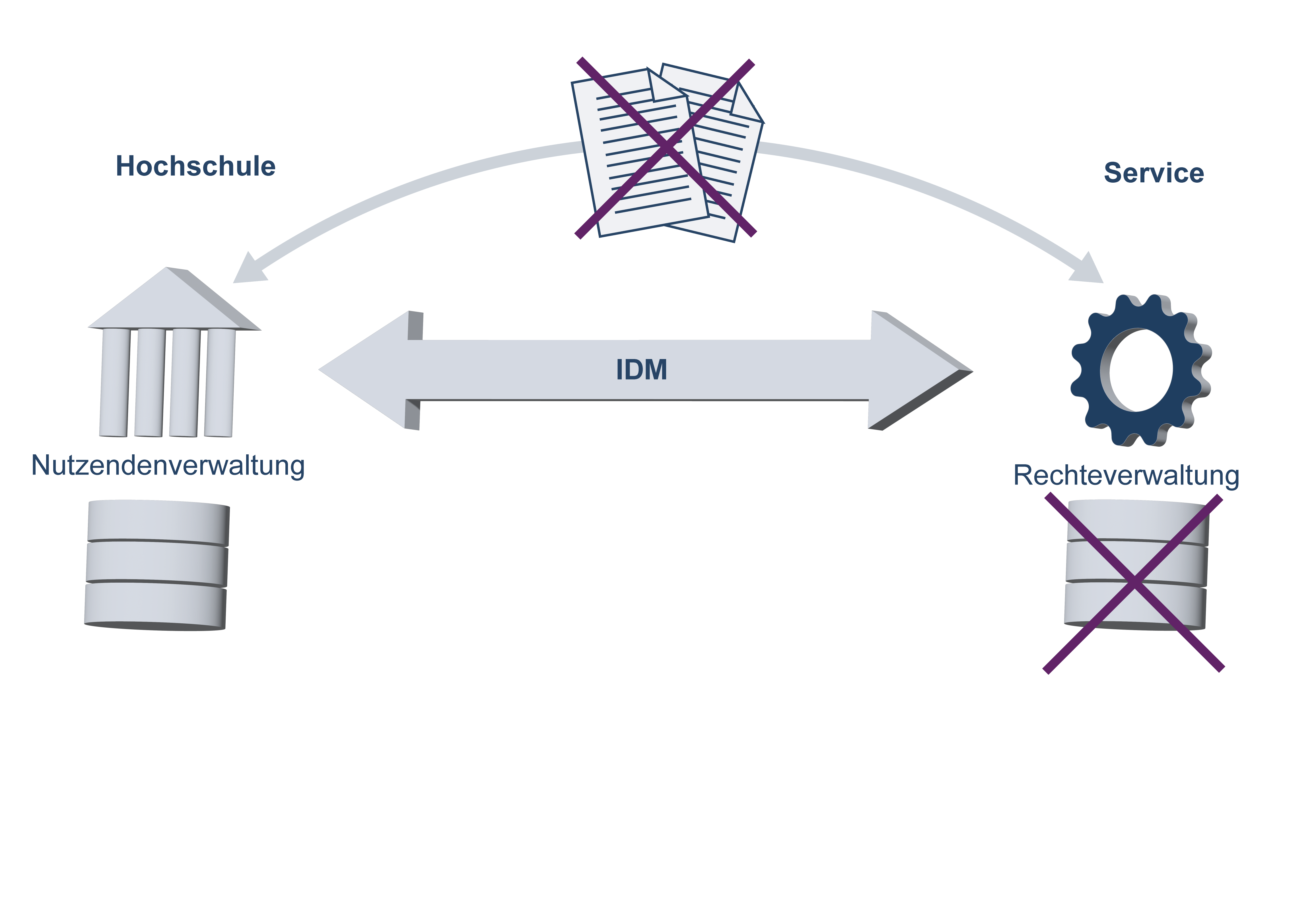 Dazu schafft IDM.nrw die erforderlichen infrastrukturellen, technologischen und organisatorischen Bedingungen und etabliert ein föderiertes Identitätsmanagement als Netzwerk der lokalen IdMs der NRW-Hochschulen.